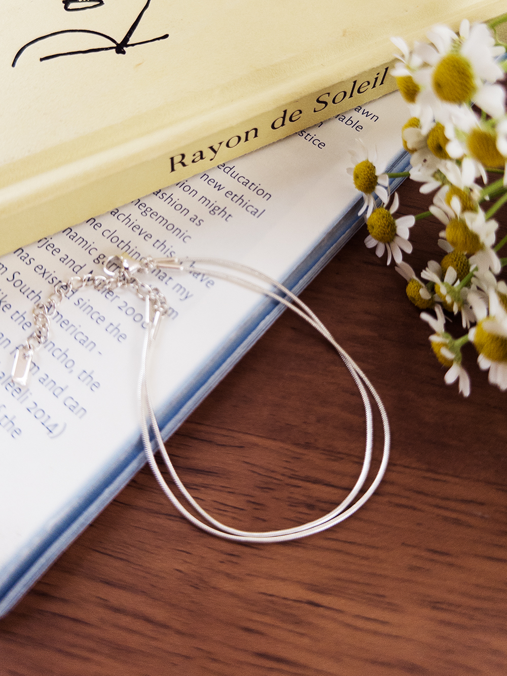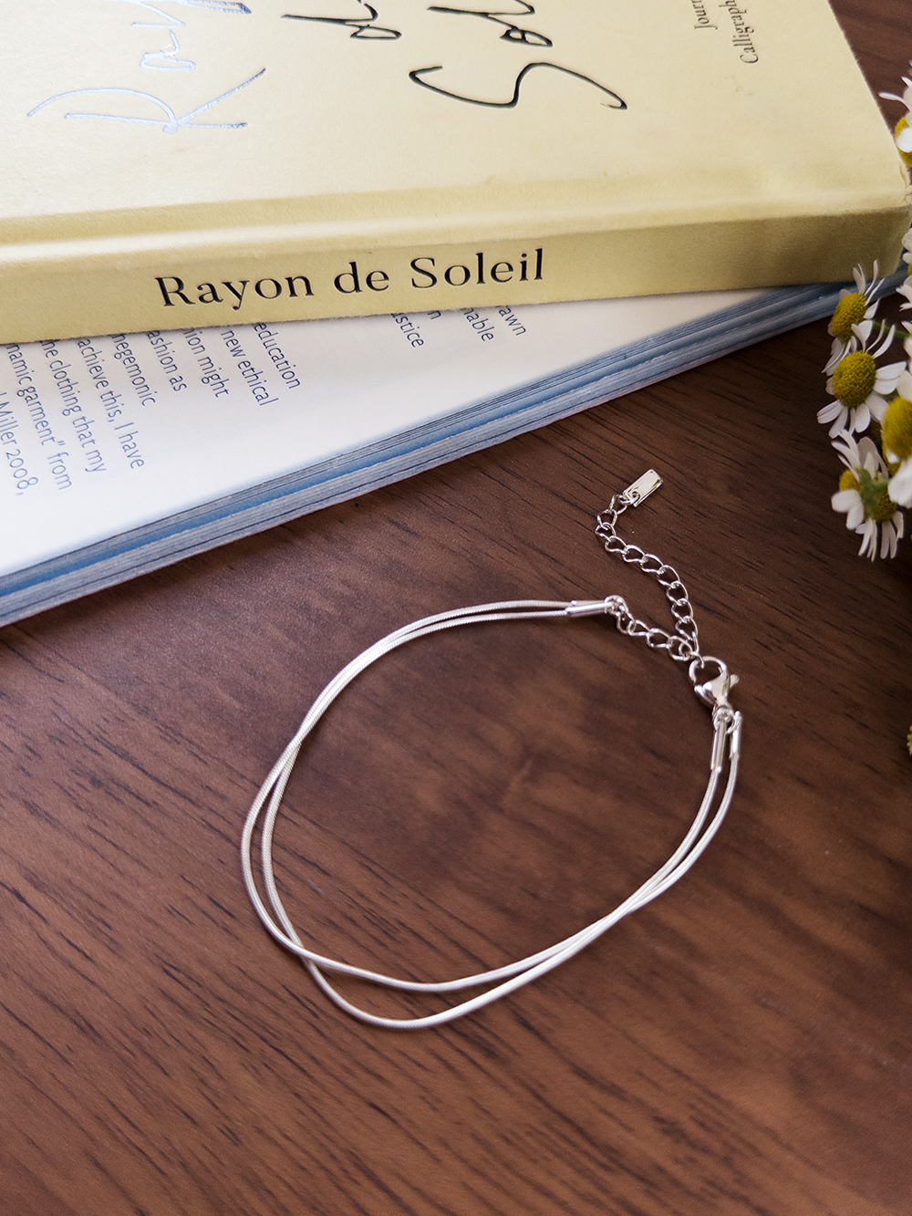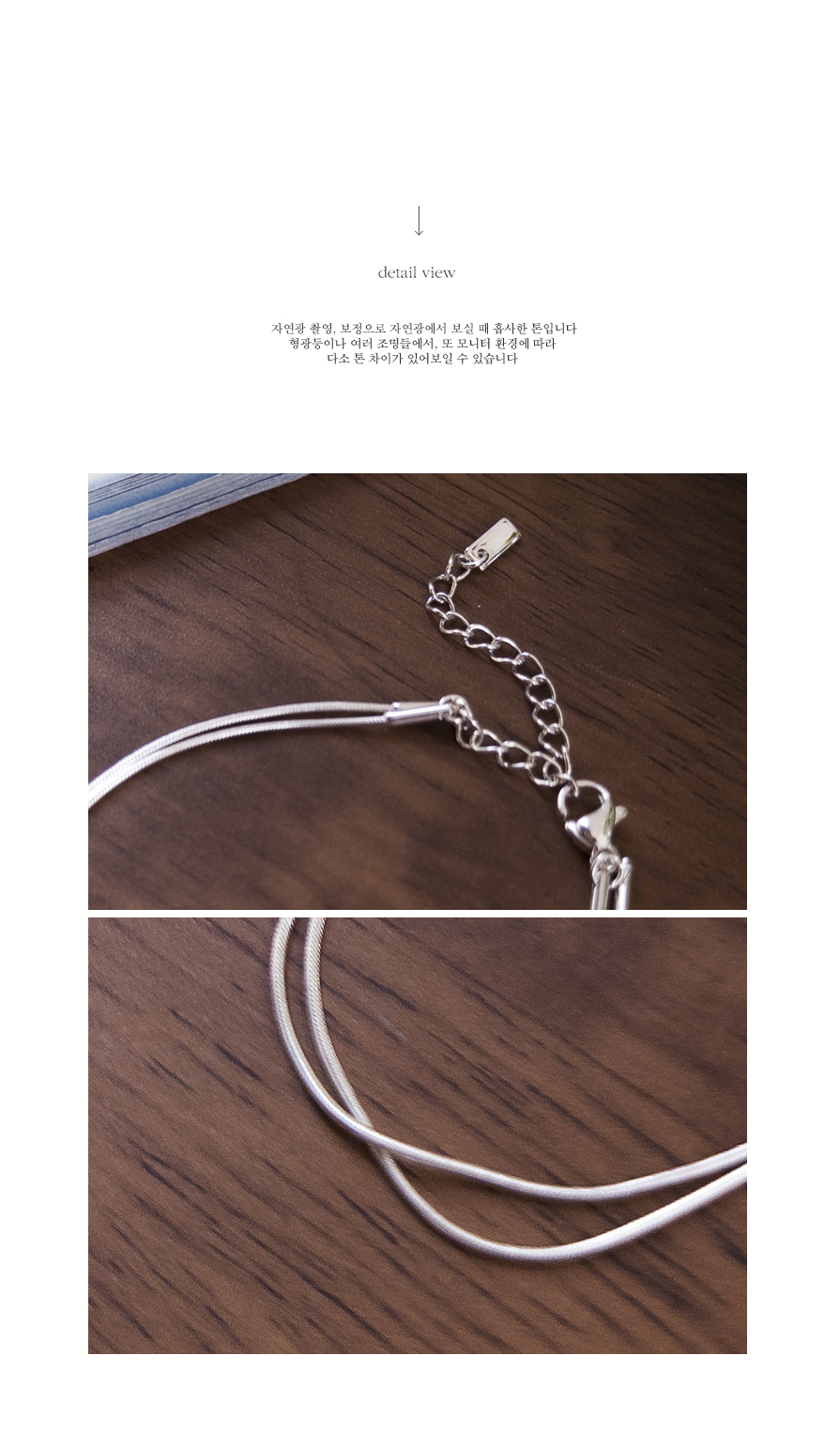얇은 체인을 두 줄로 연결해 자연스럽게 레이어드한 듯 연출되는 팔찌예요 :) 움직일 때마다 은은하게 반짝여 여성스러운 분위기를 더해줘요. 기본 티셔츠, 블라우스 어디에나 잘 어울리는 데일리 포인트 아이템이에요♥