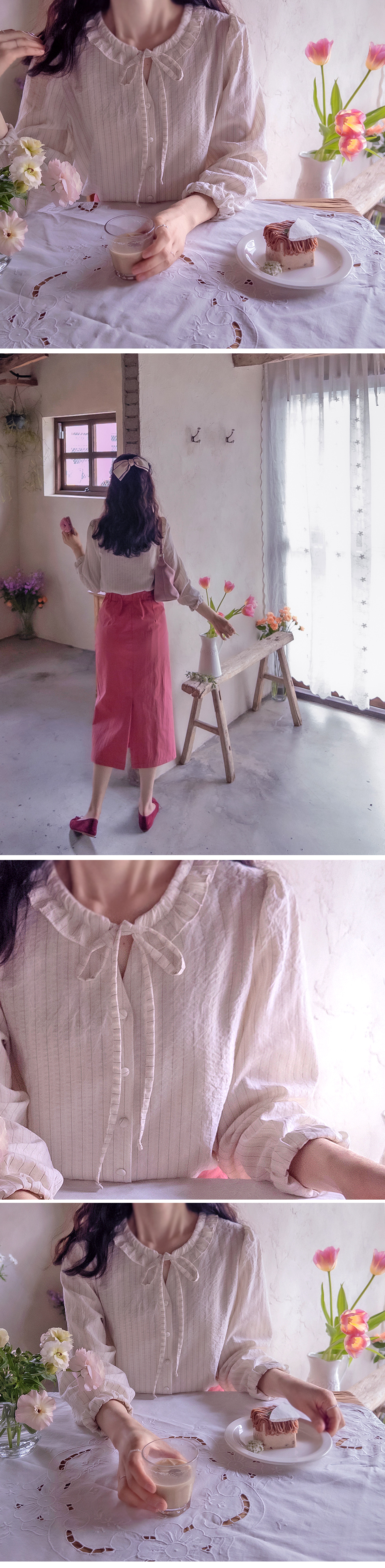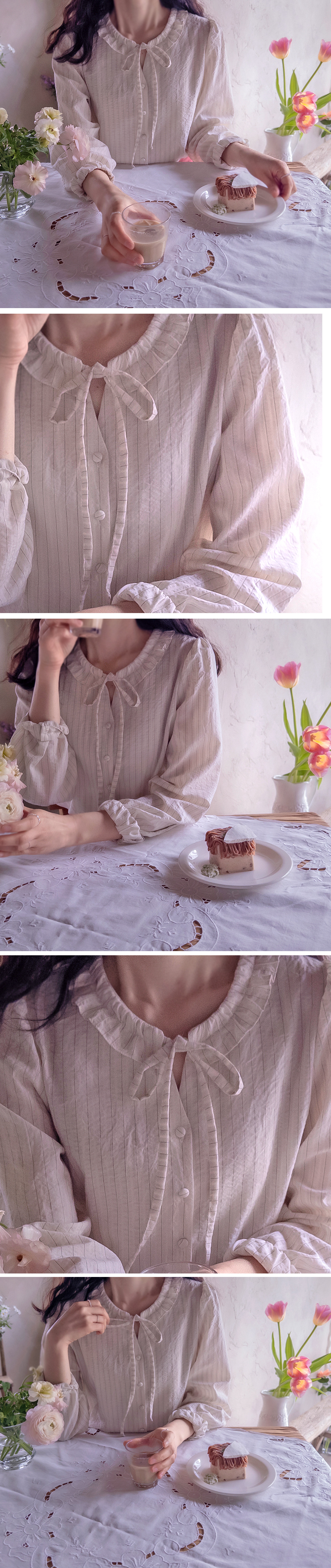 스트라이프에 입체가 있는 원사로` 실제로 받아 보시면 더 만족감을 드릴 블라였어요` 과하지 않는 넥 끈이 요즘 제일 많이 입으시는 타이처럼 끈을 늘어뜨리셔서 연출하셔도 좋구요` 리본으로 묶어서 단정하게 입기에도 좋으세요` 원단 너무 좋아요` 관리도 편안하게 구김에도 강한 소재감으로` 처음 포장 받아보시고 스티머하시고 입으시면 크게 주름 걱정없이 입기에 좋으세요 그래서 하루종일 쾌적하고 이쁜 라인감 유지되는 블라였답니다 관리만 잘 하시면 오래도록 처음 핏 유지하면서 입으실 수 있는 블라였어요~ 사이즈 프리로 55-66까지 좋으시구요 치마 바지 다 코디 좋아서~ 자주 자주 입혀지실 블라였어요` 진심 사심을 담뿍이 담아 강추 강추 드려요~^^