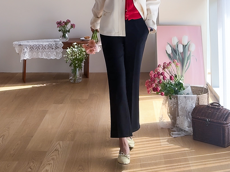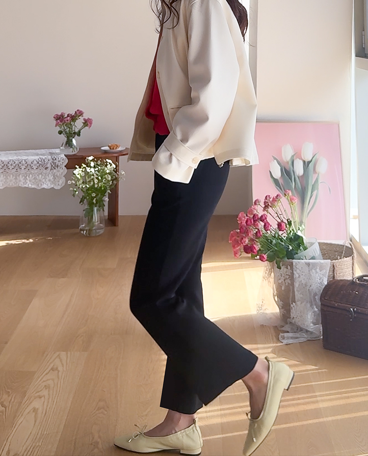 지난 시즌 큰 사랑을 받았던 슬랙스! 봄 시즌을 맞아 간절기 원단으로 보여드려요~! 짱짱한 신축성이 더해져 하루종일 착용해도 넘 편하고 예쁜 슬랙스인데요 무려 스판이 8% 함유된 원단으로 치즈처럼 쭈욱 늘어나는 신축성이 돋보이는 원단이에요*.* 링클프리로 구김도 없어서 하루종일 착용해도 핏 흐트러짐 없고 편안하게 착용되는 마법의 슬랙스랍니다 ㅎㅎ 또한 허리는 전체 히든밴딩으로 되어있는데요 일반적인 허리 밴딩보다 넓은 밴딩을 사용해주어서 배 부분의 군살을 말끔하게 커버해주어요! 부츠컷 실루엣으로 다리라인도 늘씬하고 말라보이고 어느 체형에나 호불호없이 누구나 즐기기 좋은 실루엣이라 강추! 이미 많은 고객님들의 후기로 예쁨과 편함을 인정받은 아이템인만큼 매일매일 함께하기 좋은 데일리 슬랙스로 꼬~옥 추천드려요🤍