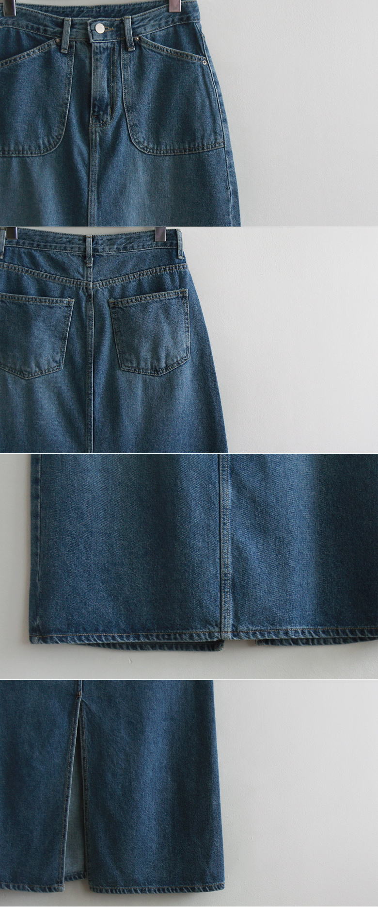 뻑뻑하고 몸이 힘든 데님 소재가 아니라 유연하고 부드러운 소재감으로 난 스판이지만 전혀 불편함 없이 입으시는 스컷으로~