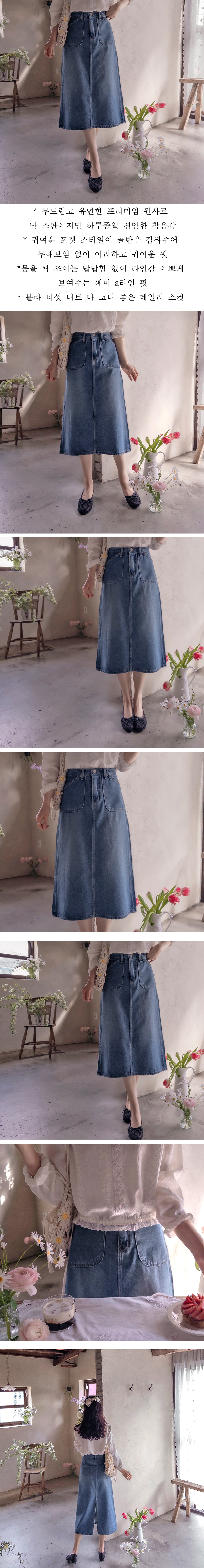 주머니 있어 골반은 쏙 커버되고 러블리 하면서도 세련된 귀여운 핏의 데님 스컷이랍니다`