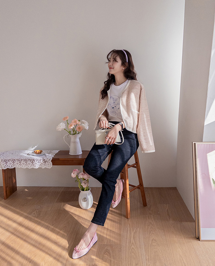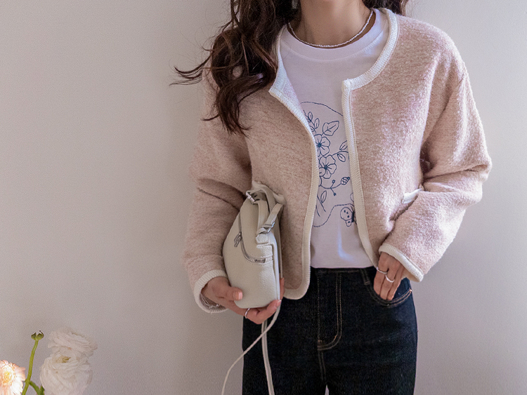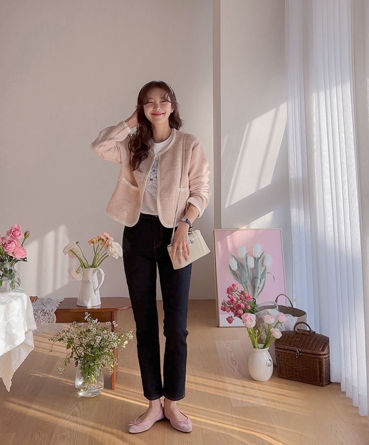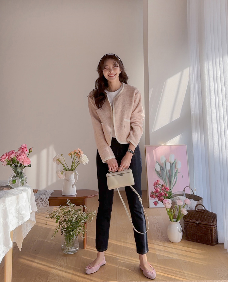 꾸민 듯 안 꾸민 듯, 단정하면서도 분위기 있게 연출되는 노카라 자켓 가디건 소개해드릴게요 >,< 은은하고 부드러운 파스텔 컬러에 깔끔한 배색 라인이 더해져 고급스럽고 부드러운 무드를 완성해줘요♡ 군더더기 없이 깔끔하게 떨어지는 핏이라 어깨 라인은 단정하게 잡아주고 적당한 기장감으로 다리는 길어 보이게 해주는 실루엣이에요! 양쪽 포켓 디테일까지 더해져 밋밋함 없이 세련된 포인트가 되어주구요~ 지금 같은 간절기 시즌에 딱! 티셔츠, 블라우스, 니트 어디에나 잘 어울려서 데님이랑은 캐주얼하게, 슬랙스랑은 출근룩으로도 추천드려요♥ 하나쯤 소장하시면 매 시즌 꺼내 입기 좋은 데일리 자켓 가디건으로 강추드립니다 :) ✨