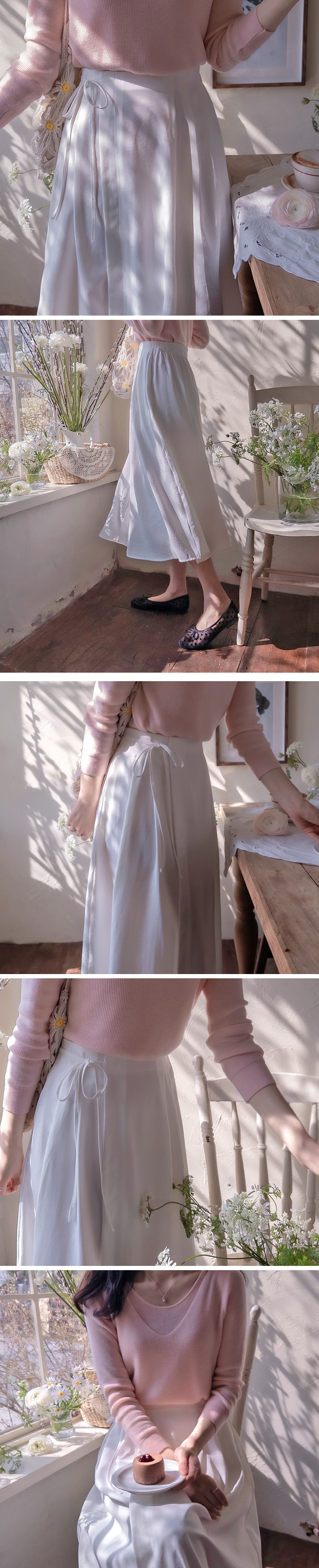 home > SKIRT > Alice Side Ribbon Edge Fit Flowing Fit Skirt [size:F(55~66)]