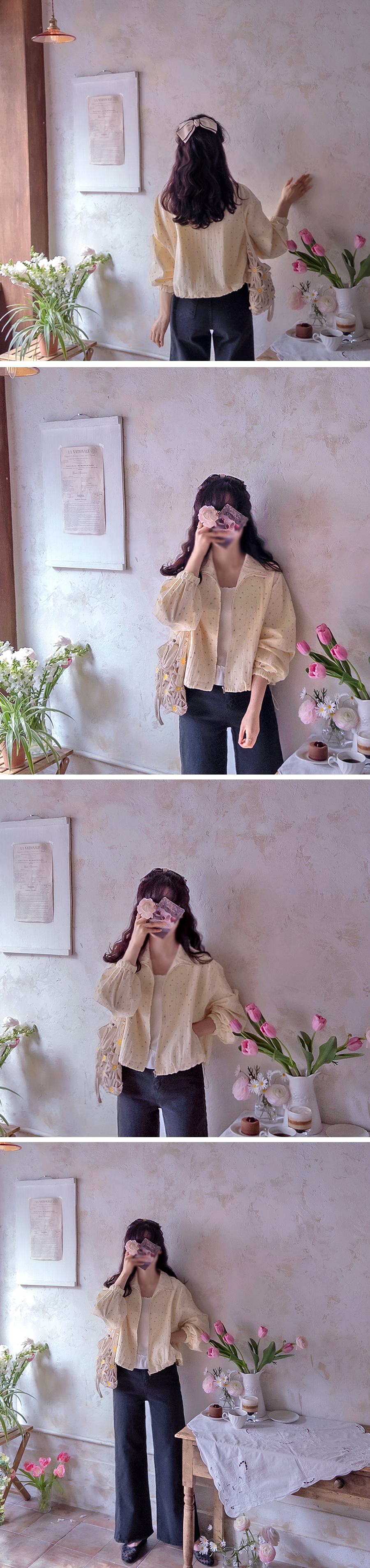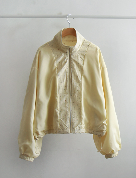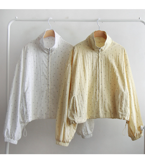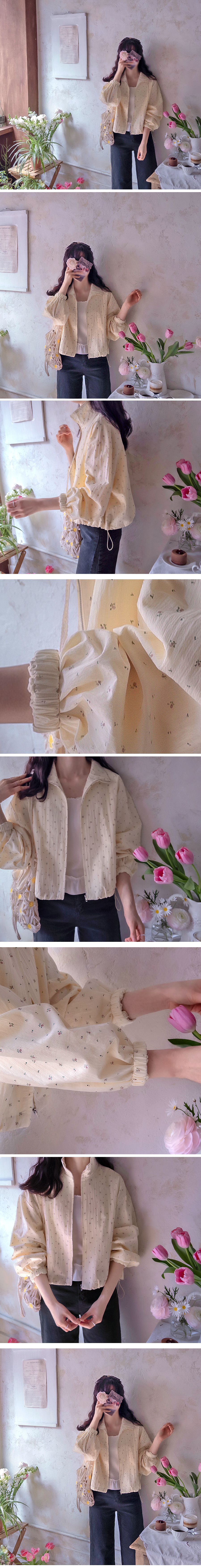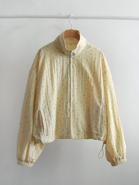 [Elastic sleeves] [Adjustable hem drawstring for a cute fit] [Lovely, lightweight zip-up spring jumper with a Mini Flower pattern] [A coveted jumper that creates a bright mood] [Looks gorgeous open with the zip-up style] [Highly recommended as a sophisticated spring jumper]