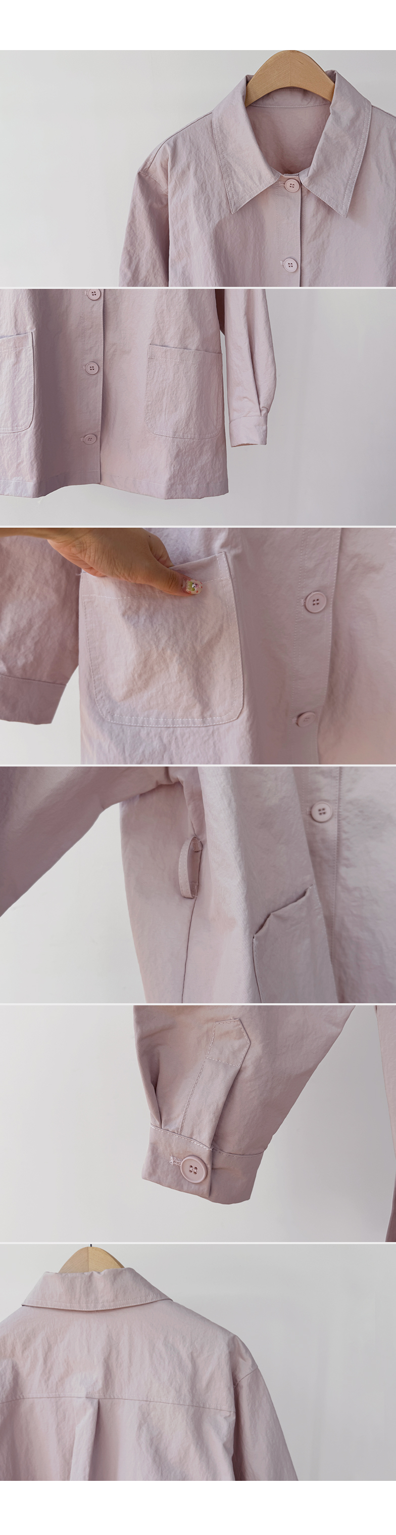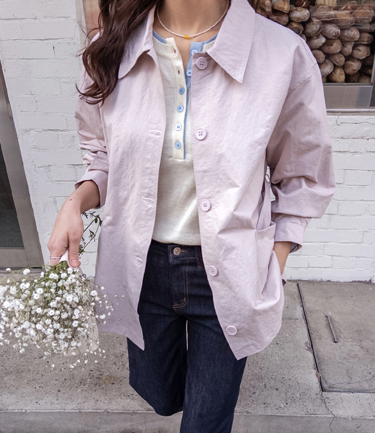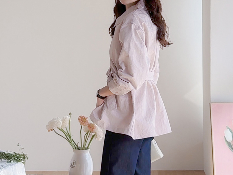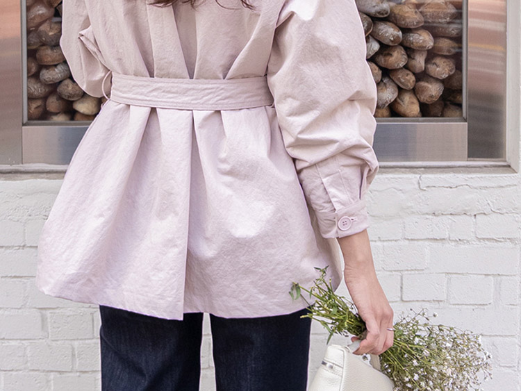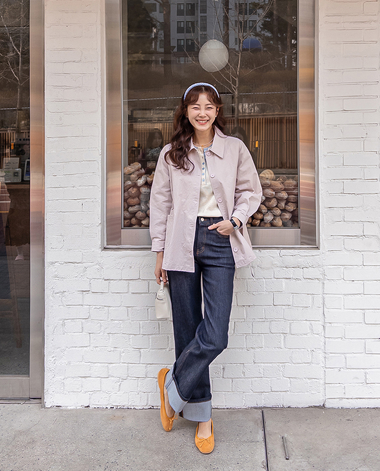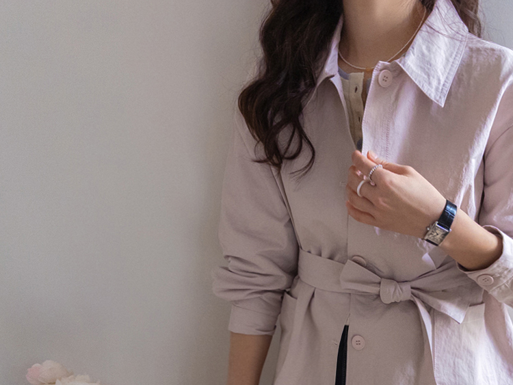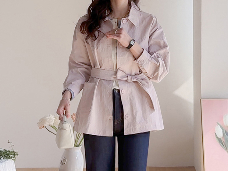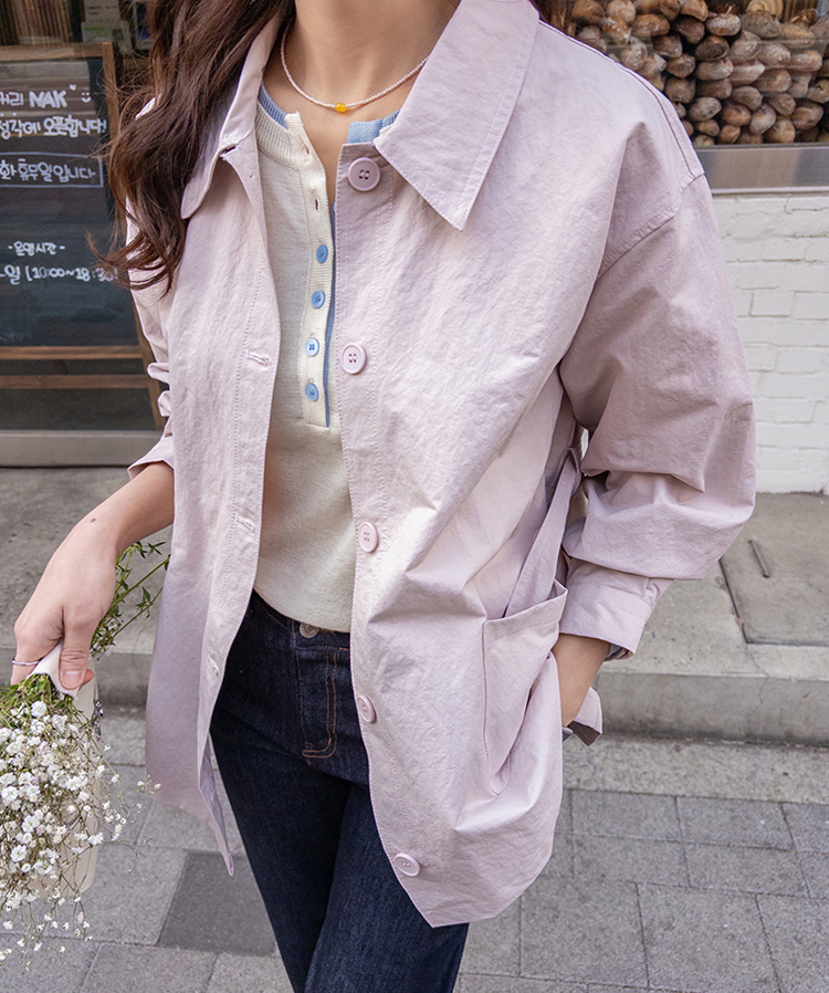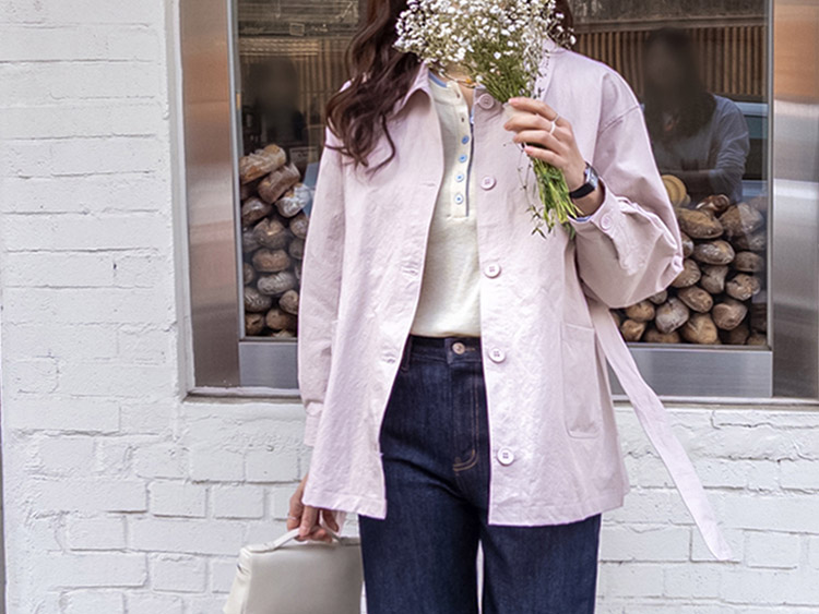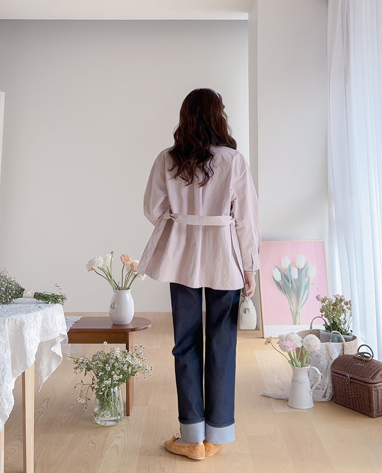 캐주얼하면서도 여성스럽게 연출하기 좋은 싱글 자켓 소개드려요 ^^ 심플한 싱글 버튼 여밈 디자인에 여유 있는 핏으로 떨어져 가볍게 걸치기 좋은 데일리 아우터예요. 앞판에는 아웃포켓 디테일을 더해 워크자켓처럼 캐주얼한 분위기도 느껴지고 벨트를 풀어 자연스럽게 떨어뜨리면 편안한 무드로 스타일링할 수 있어요. 허리 벨트를 묶어 연출하면 허리는 잘록하게 잡아주면서 위아래로 자연스러운 볼륨이 생겨 여성스러운 실루엣이 멋스럽게 완성됩니다. 벨트를 풀어 늘어뜨리면 뒤쪽에 은은한 훌이 생겨 또 다른 분위기로 연출이 가능하고요, 소매는 손목뼈 정도까지 오는 9부 기장으로 가볍고 세련된 느낌을 더해줍니다. 가볍고 드라이한 터치감의 소재로 간절기에 부담 없이 걸치기 좋고 데님이나 슬랙스와 함께 데일리룩으로 활용하기 좋은 자켓이에요 ♡