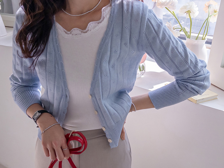 여리하고 여성스러운 실루엣을 더해줄 레이스 디테일 가득한 나시 보여 드릴게요~ 잔잔한 세로 골지 라인으로 시각적으로 더욱 슬림한 라인을 연출해 주고~ 쫀쫀~하게 늘어나는 스판끼와 부드러운 터치감으로 편하게 착용 가능!^.^ 활용도 높은 컬러들로 준비했구요~ 데일리하게 즐기면서 우아한 무드를 더해 줄 나시! 룩에 로맨틱한 분위기를 더해보세요~♥