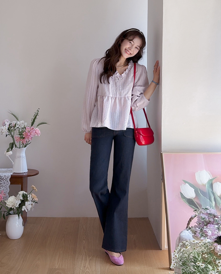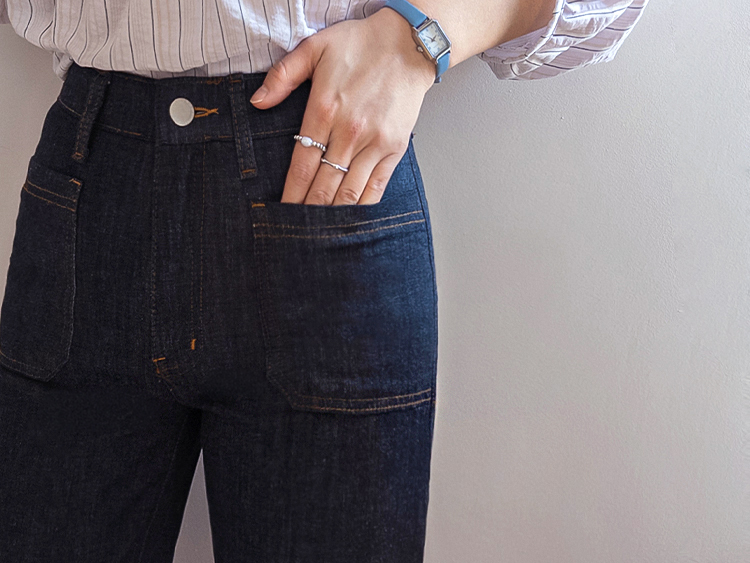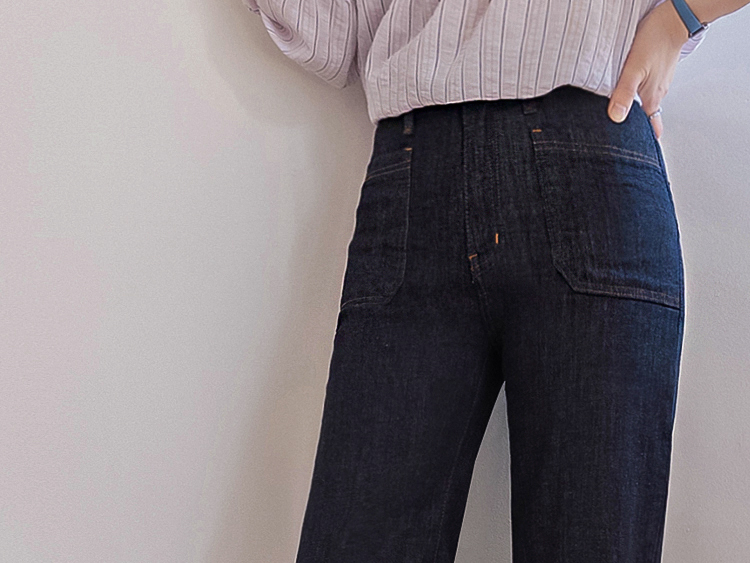 깔끔하면서도 디테일이 살아있는 논페이드 데님 팬츠 소개드려요 ^^ 깊이감 있는 생지 컬러의 논페이드 데님으로 밝은 상의와도 부담 없이 매치하기 좋고 데일리하게 활용하기 좋은 아이템이에요. 원단은 탄탄한 데님에 스판이 더해진 소재로 핏을 깔끔하게 잡아주면서도 활동 시에는 편안하게 움직일 수 있어 착용감까지 챙겨준 팬츠이고요, 가장 큰 포인트는 앞면에 더해진 빅 포켓과 스티치 디테일로 기본 데님보다 한층 더 경쾌하고 캐주얼한 분위기를 살려줍니다. 핏은 허리와 힙은 안정감 있게 잡아주면서 허벅지부터 밑단까지 곧게 떨어지다가 밑단으로 갈수록 살짝 여유가 느껴지는 세미 부츠컷 라인으로 다리 라인이 길고 슬림해 보이게 연출돼요. 앞, 뒤 모두 깔끔하게 정리된 라인으로 다양한 상의와 매치하기 좋은 데일리 데님으로 추천드릴게요 ♥