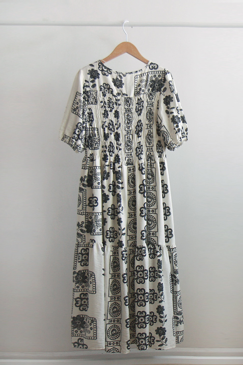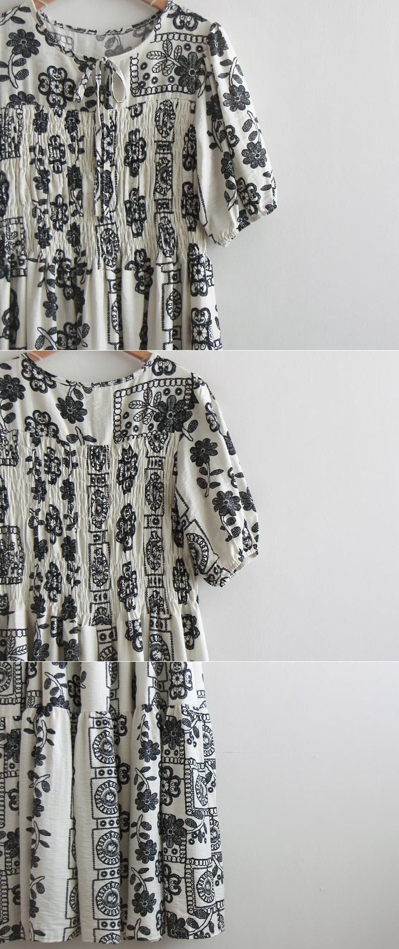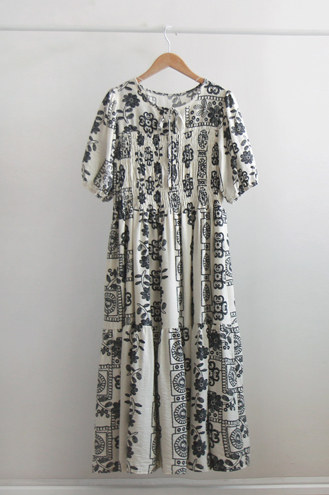 [Polyester Lining][Neck Strap: Pretty when tied into a ribbon][Smocked banding creates a slim, relaxed fit and serves as a key point, forming an elegant mood][Breeze-free fit, perfect for both Summer and Spring][Highly recommended as a dress with a naturally flowing fit that is lovely to wear throughout the upcoming season]