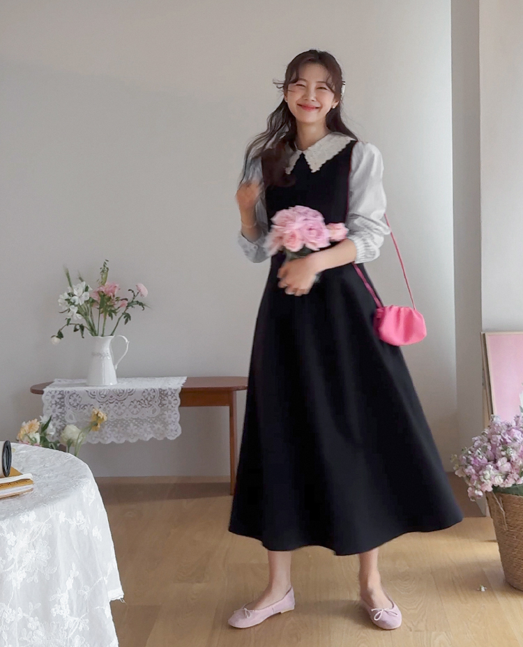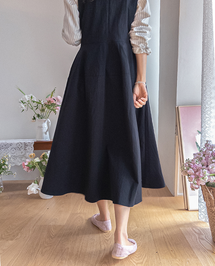 날씨가 조금씩 더워지면 요런 깔끔한 민소매 원피스 정말 손이 많이 가죠~ 어떤 아우터와 이너도 잘 어울리고, 단독으로 입어도 예쁜 갓성비 민소매 원피스 소개해 드려요 ^^ 요 아이는 군더더기 없는 베이직한 디자인이라 언제 어디서든 입기 부담 없답니다 :) 허리 라인을 잡아주면서 아래로 넓게 퍼지는 풍성한 와이드 플레어 핏이라 체형 커버는 물론이고 입었을 때 실루엣이 너무 예쁘더라구요!! 과하지 않게 바스락~한 소재감이라 부담없이 편하고 쾌적하게 즐기기 좋구요~! 가디건이나 셔츠를 걸쳐서 단정하게 연출해도 예쁘고, 더운 날엔 단독으로 시원하고 편안하게 입기도 GOOD~ 출근룩, 하객룩, 데이트룩으로 휘뚜루하게~ 여기저기 매치하기 좋은 민소매 원피스로 강력 추천드려요♥