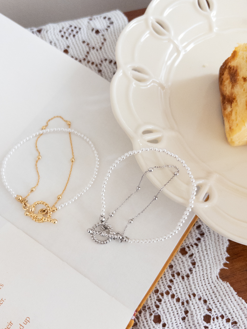 맑고 단정한 느낌의 진주 비즈 라인과