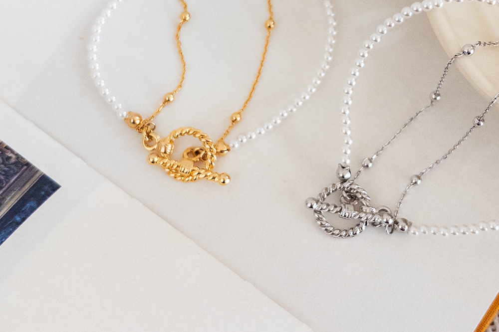 [A stylish key point with a pearl and chain mix design] [Available in two colors: Silver and Gold] [Feminine mood with delicate bead details] [An item that serves as a key point even without layering]