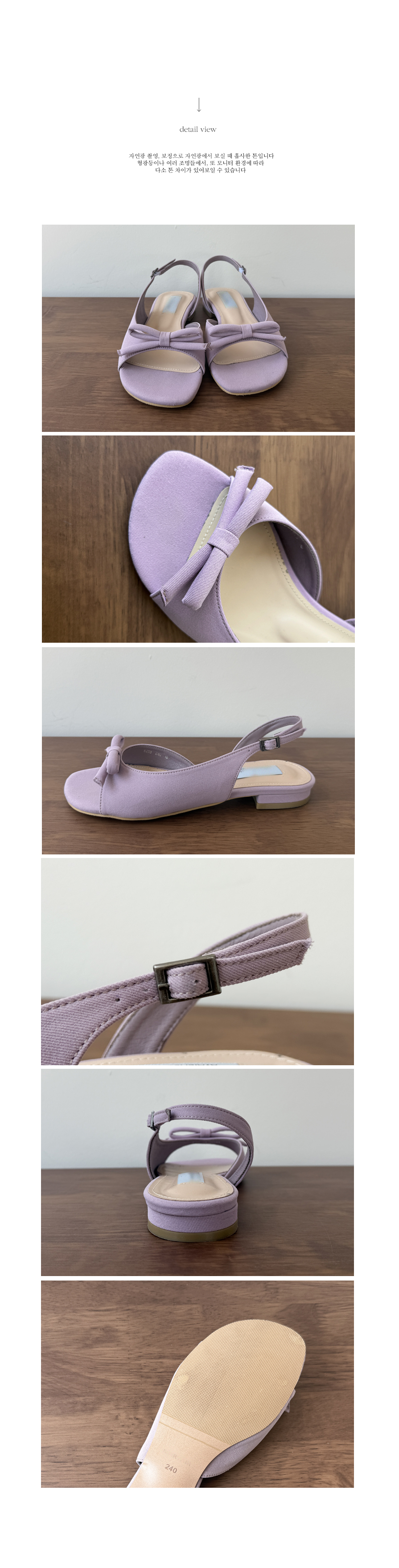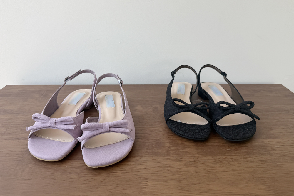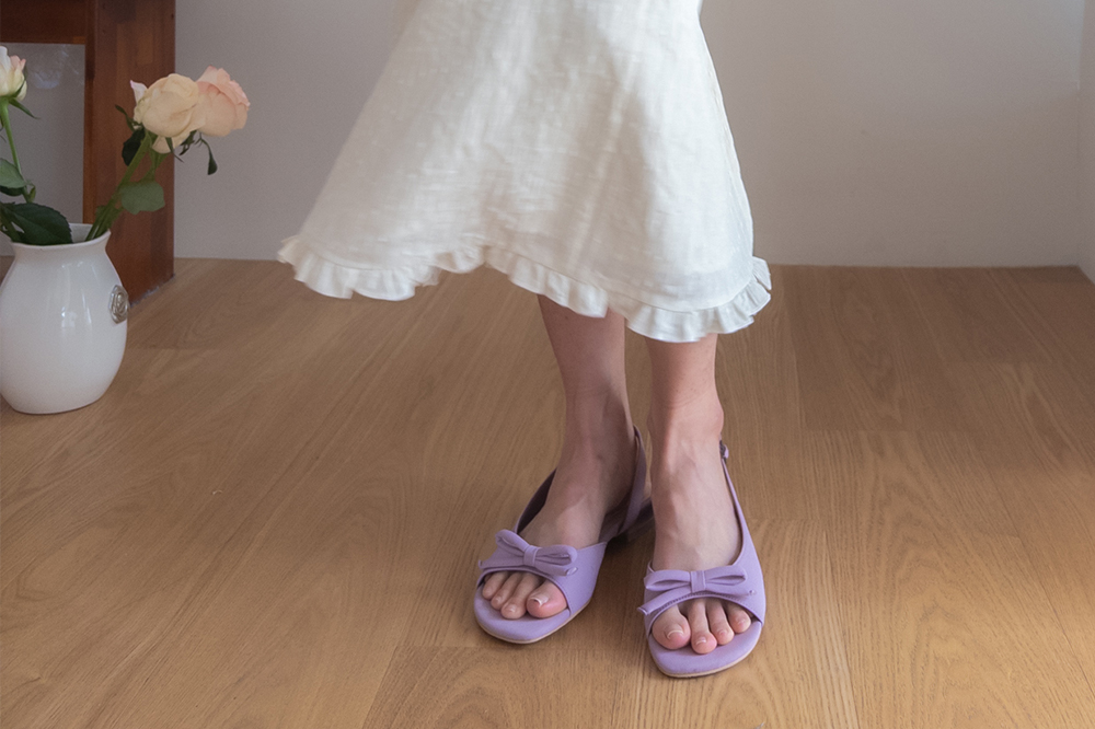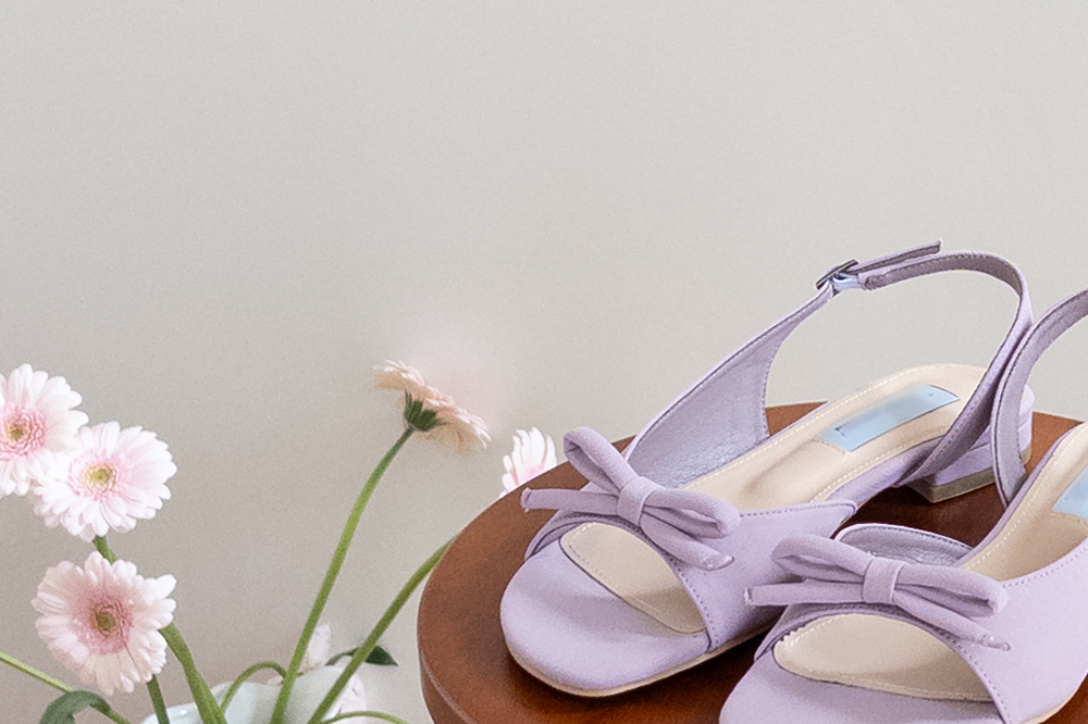 신는 순간 발끝까지 사랑스러워지는 리본 스트랩 샌들 소개드려요 :) 부드러운 파스텔 라일락 컬러감이 과하지 않으면서도 은은하게 포인트가 되어 여름 코디에 화사함을 더해주는 아이템이에요. 발등을 감싸는 와이드한 스트랩 위에는 입체감 있는 리본 디테일이 더해져 심플한 디자인에 사랑스러운 분위기를 자연스럽게 살려줘요. 너무 과하지 않은 크기로 데일리하게 부담 없이 매치하기 좋아요. 뒤쪽은 슬링백 스트랩 구조로 발을 안정적으로 잡아주면서도 답답함 없이 가볍게 착화 가능해요. 버클로 길이 조절이 가능해 발에 맞게 편안하게 착용하실 수 있어요. 앞코는 살짝 라운딩된 쉐입으로 부드럽고 단정한 느낌을 주며, 전체적으로 낮은 플랫 굽이라 장시간 착용에도 부담 없이 데일리로 신기 좋아요. 원피스, 스커트는 물론 데님이나 슬랙스에도 잘 어울려 꾸안꾸 스타일에 포인트 주기 좋은 샌들로 추천드릴게요 ♥