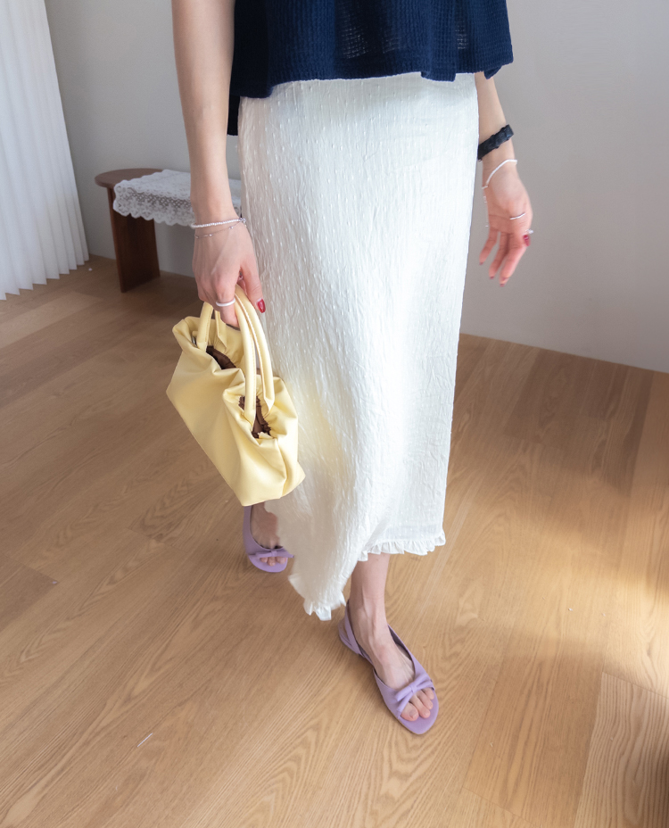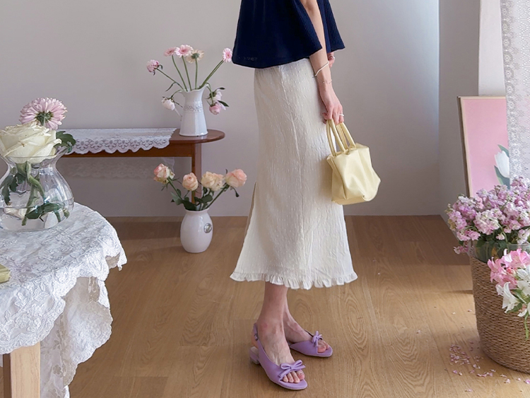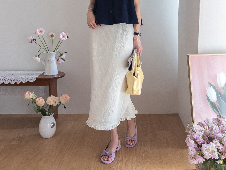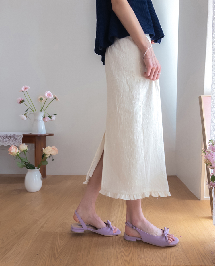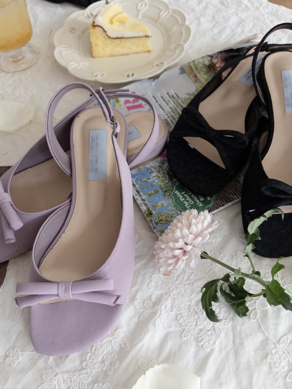 신는 순간 발끝까지 사랑스러워지는 리본 스트랩 샌들 소개드려요 :) 부드러운 파스텔 라일락 컬러감이 과하지 않으면서도 은은하게 포인트가 되어 여름 코디에 화사함을 더해주는 아이템이에요. 발등을 감싸는 와이드한 스트랩 위에는 입체감 있는 리본 디테일이 더해져 심플한 디자인에 사랑스러운 분위기를 자연스럽게 살려줘요. 너무 과하지 않은 크기로 데일리하게 부담 없이 매치하기 좋아요. 뒤쪽은 슬링백 스트랩 구조로 발을 안정적으로 잡아주면서도 답답함 없이 가볍게 착화 가능해요. 버클로 길이 조절이 가능해 발에 맞게 편안하게 착용하실 수 있어요. 앞코는 살짝 라운딩된 쉐입으로 부드럽고 단정한 느낌을 주며, 전체적으로 낮은 플랫 굽이라 장시간 착용에도 부담 없이 데일리로 신기 좋아요. 원피스, 스커트는 물론 데님이나 슬랙스에도 잘 어울려 꾸안꾸 스타일에 포인트 주기 좋은 샌들로 추천드릴게요 ♥