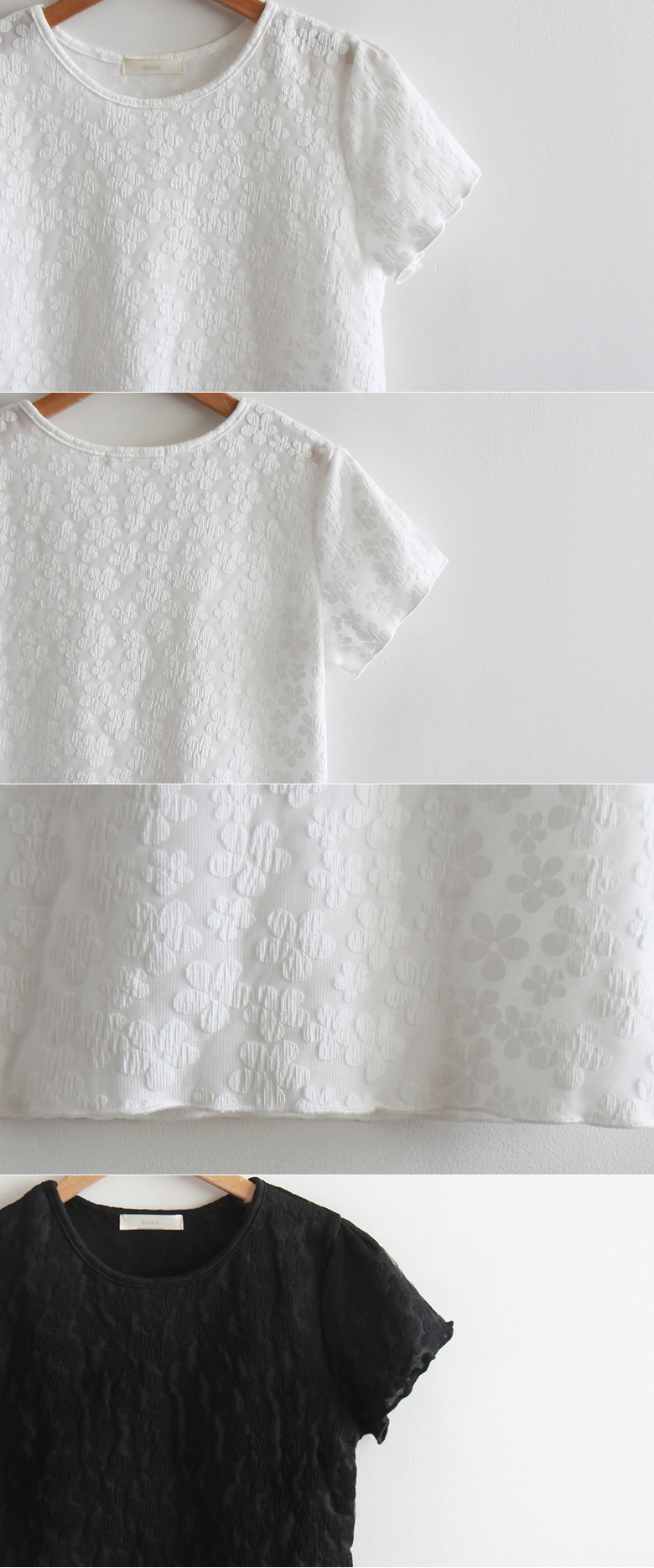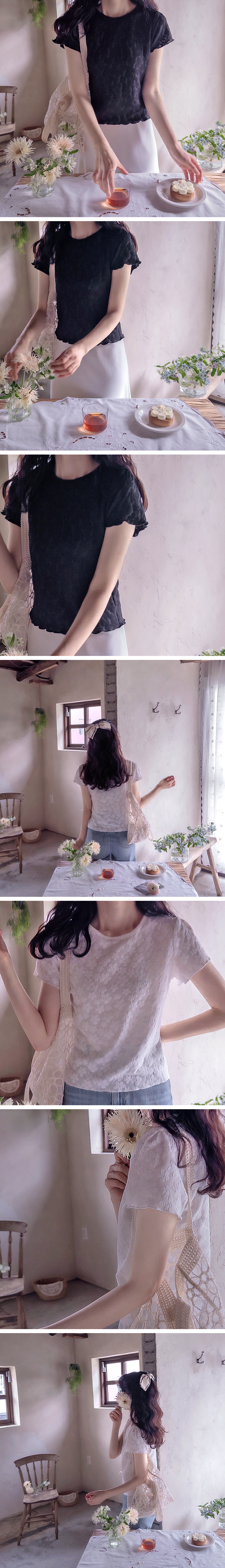 [Comfortable fit with supple stretch][Creates a lovely mood with a flower pattern][A cute tee featuring delicate flowers][Soft, supple, stretchy fabric that doesn't wrinkle][Highly recommended lovely tee featuring delicate, three-dimensional flowers]