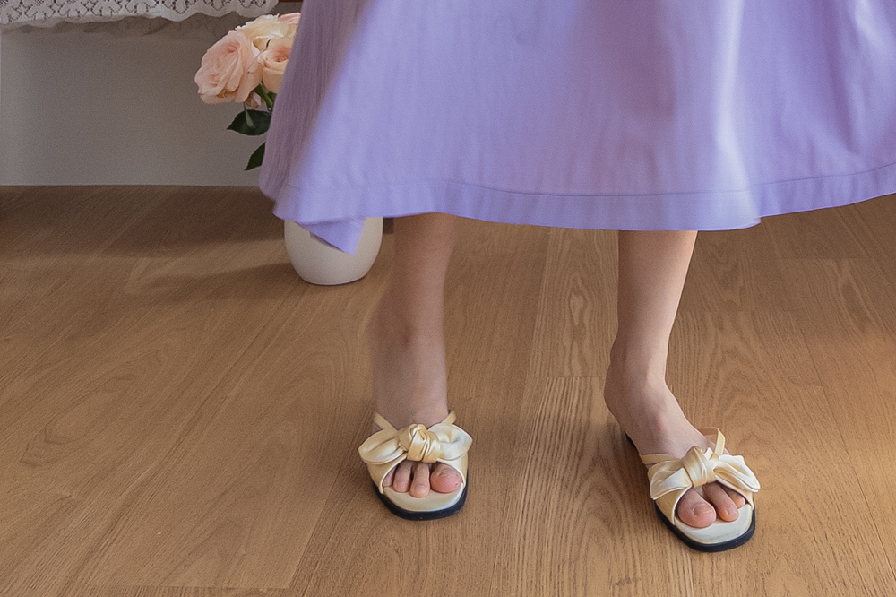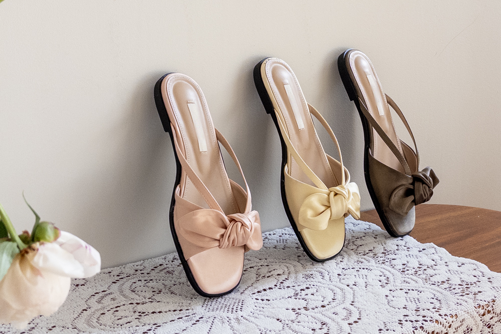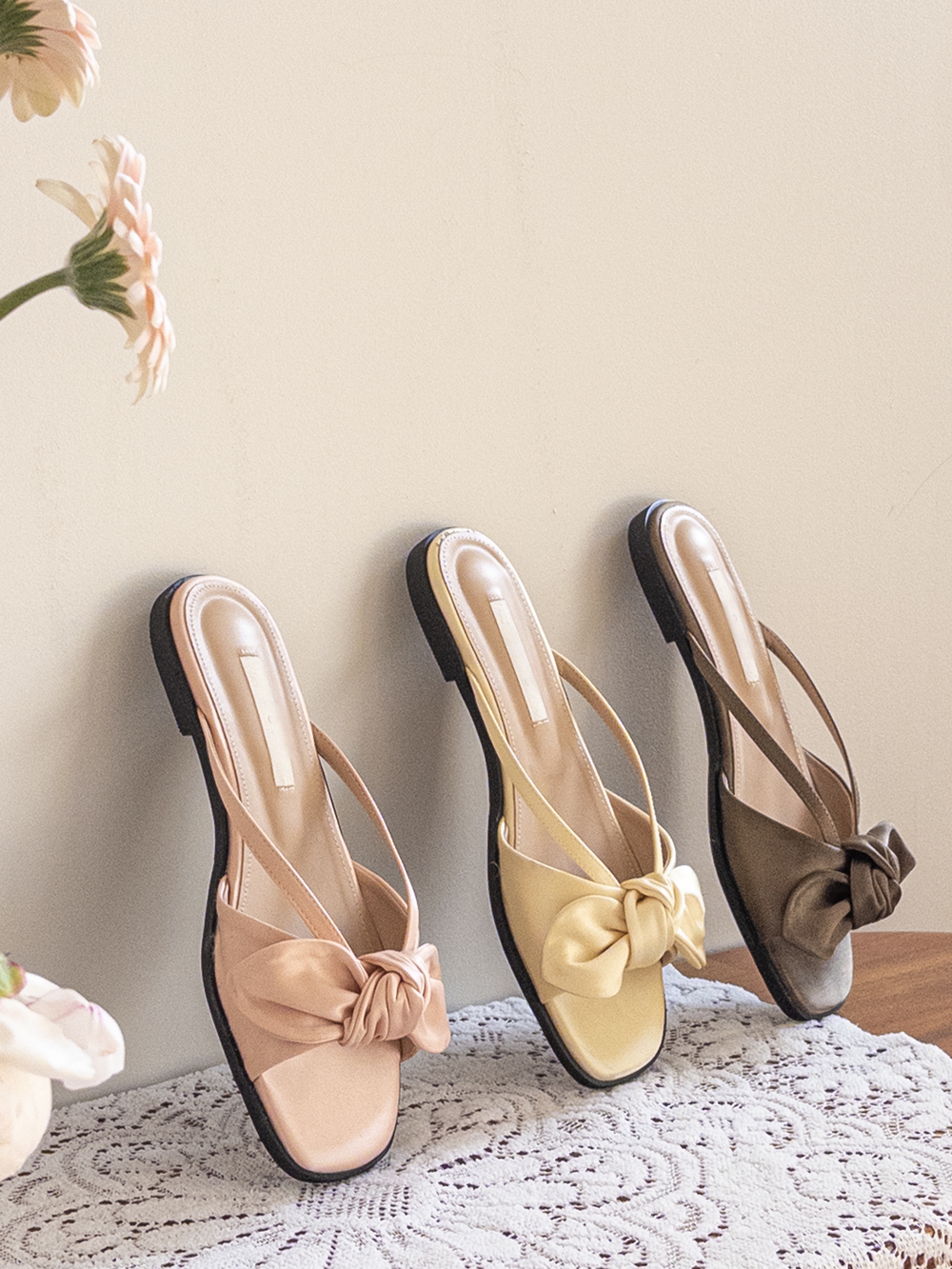 [Bold knot detail as a key point] [Lightweight fit with an open back design] [Trendy square toe line] [Available in 3 versatile colors for daily wear]