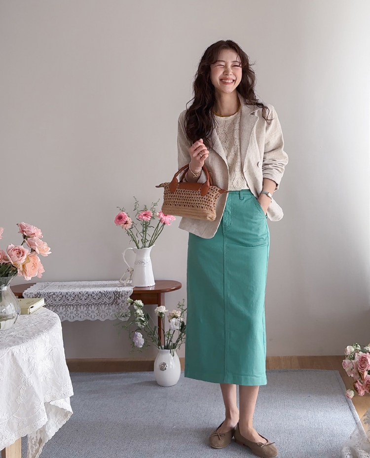 슬랙스나 스커트와 함께하면