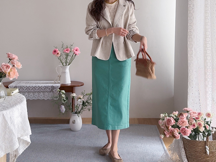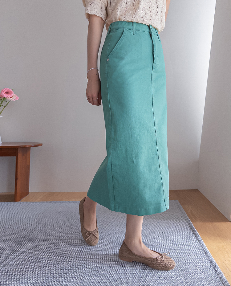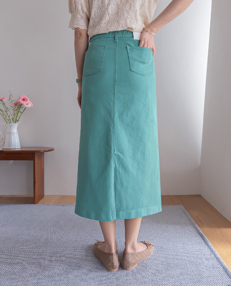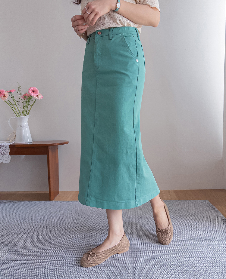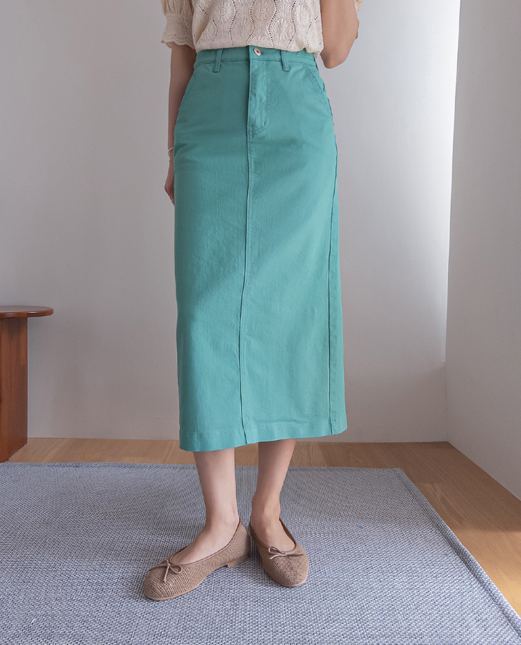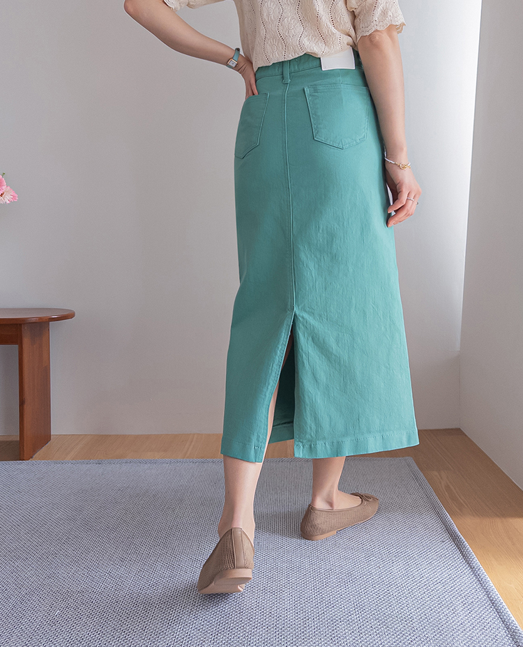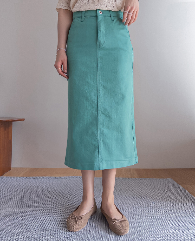 [Clean H-line silhouette*.*] [Back slit detail for comfortable movement] [Added spandex for a comfortable fit] [Daily skirt featuring fresh colors]